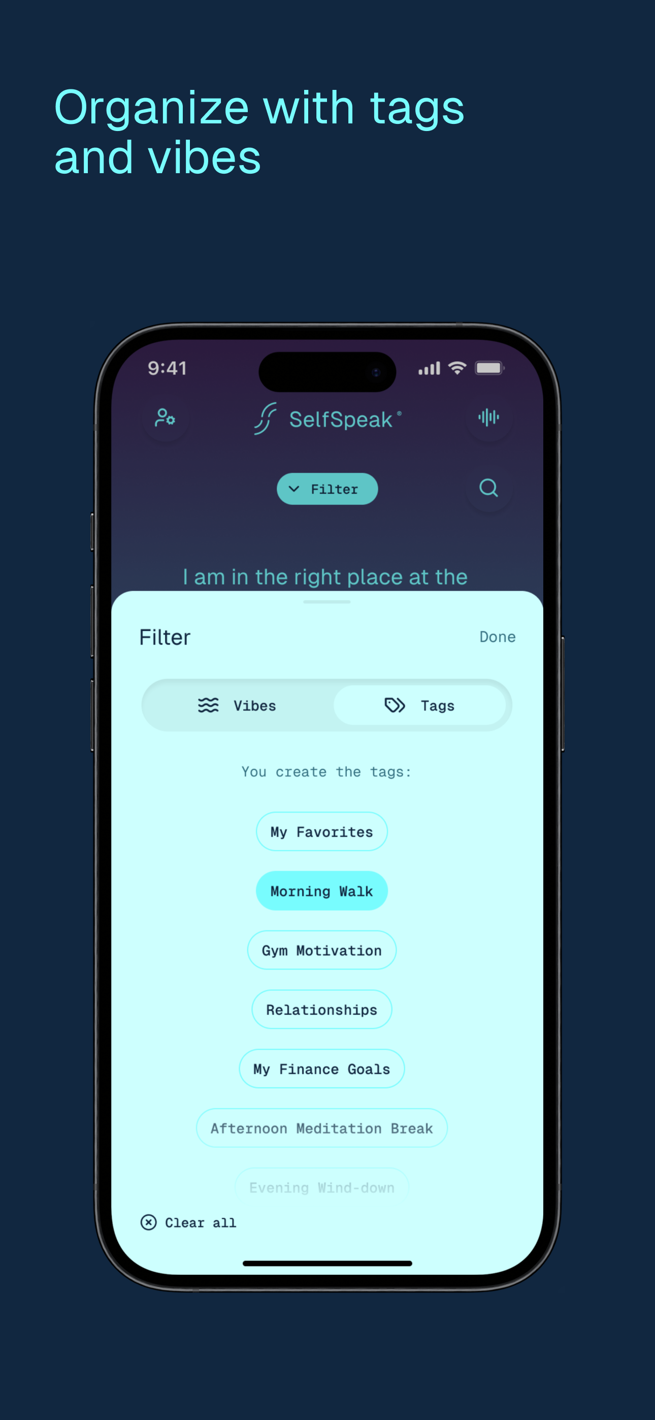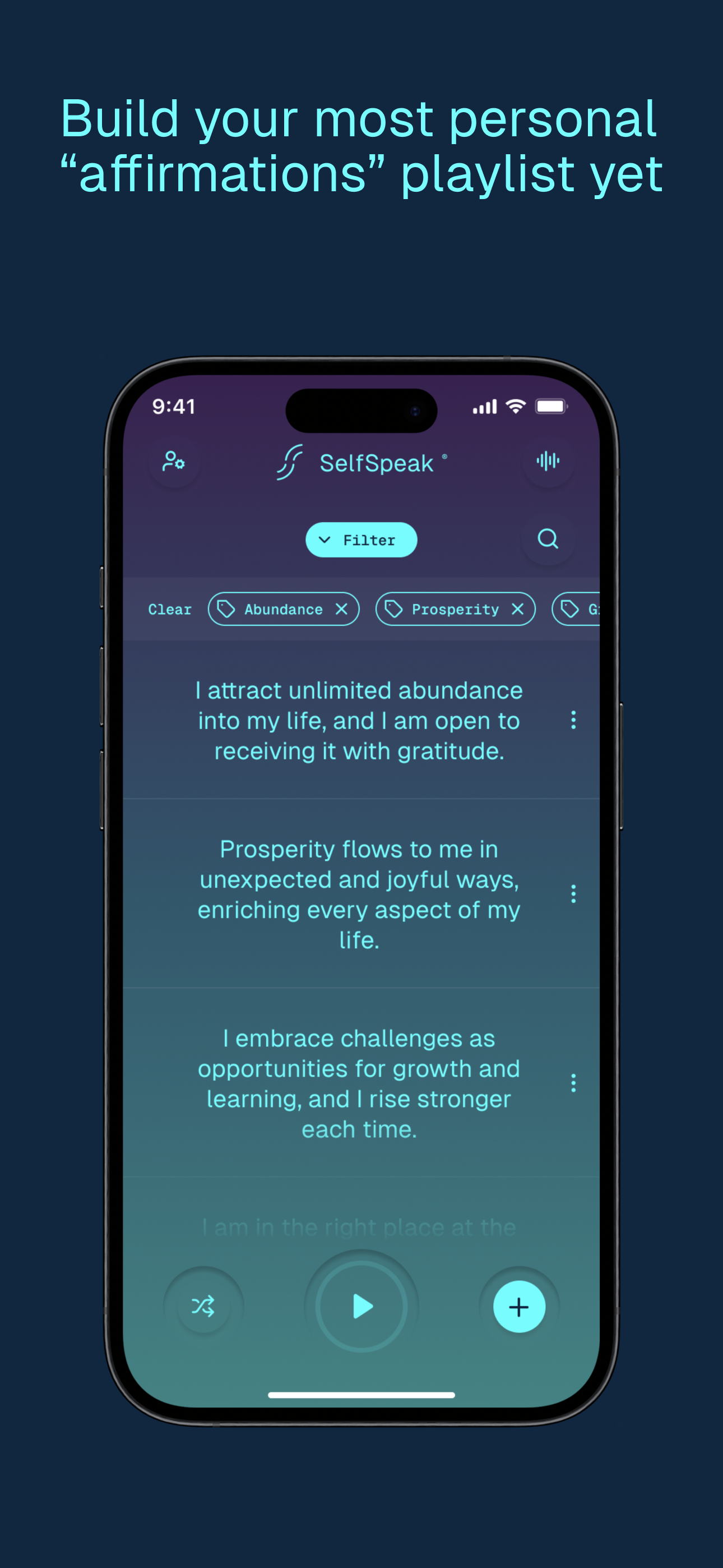 - Personal Playlists: Organize affirmations by vibe or tags (business, cycling, sleep).