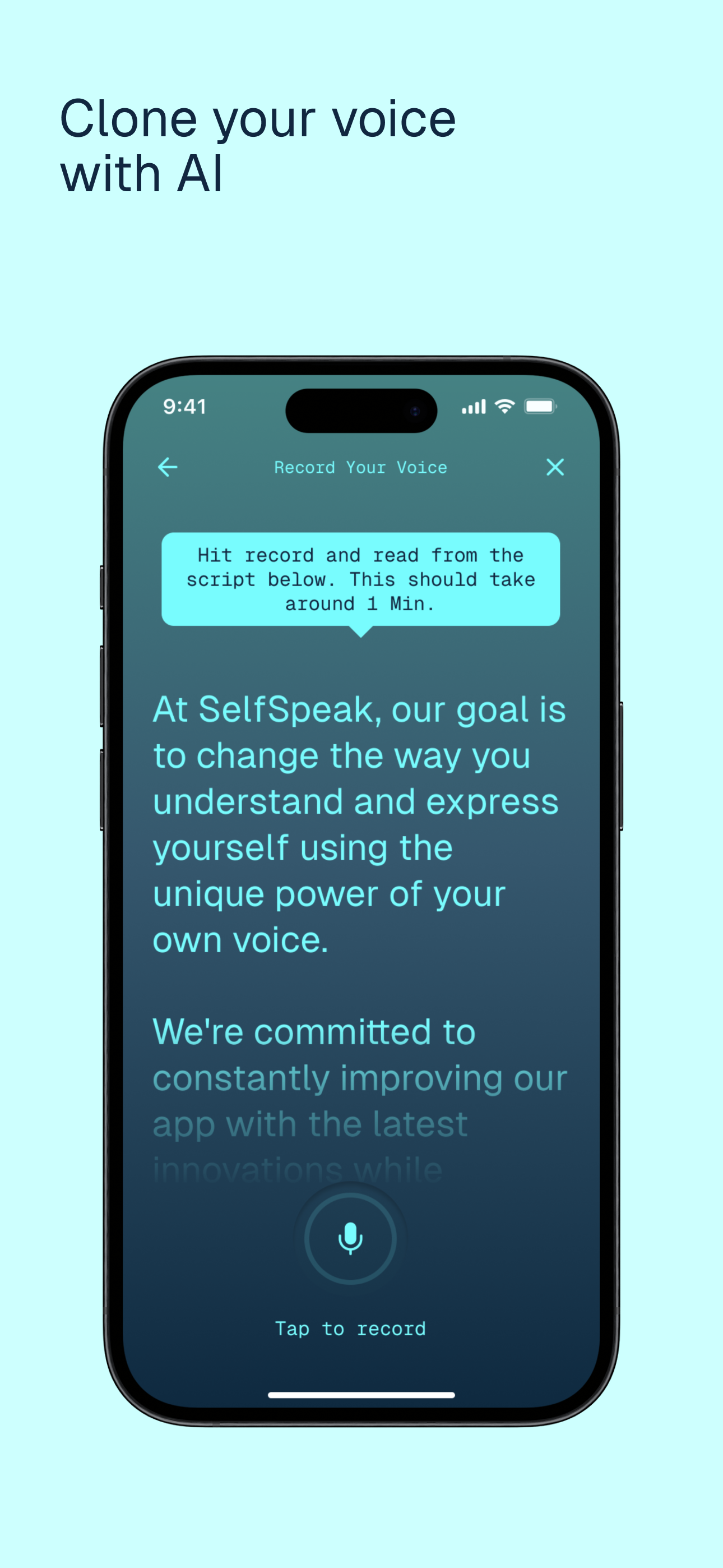 - Voice Cloning: Build a private, lifelike voice profile once — no re-recording.